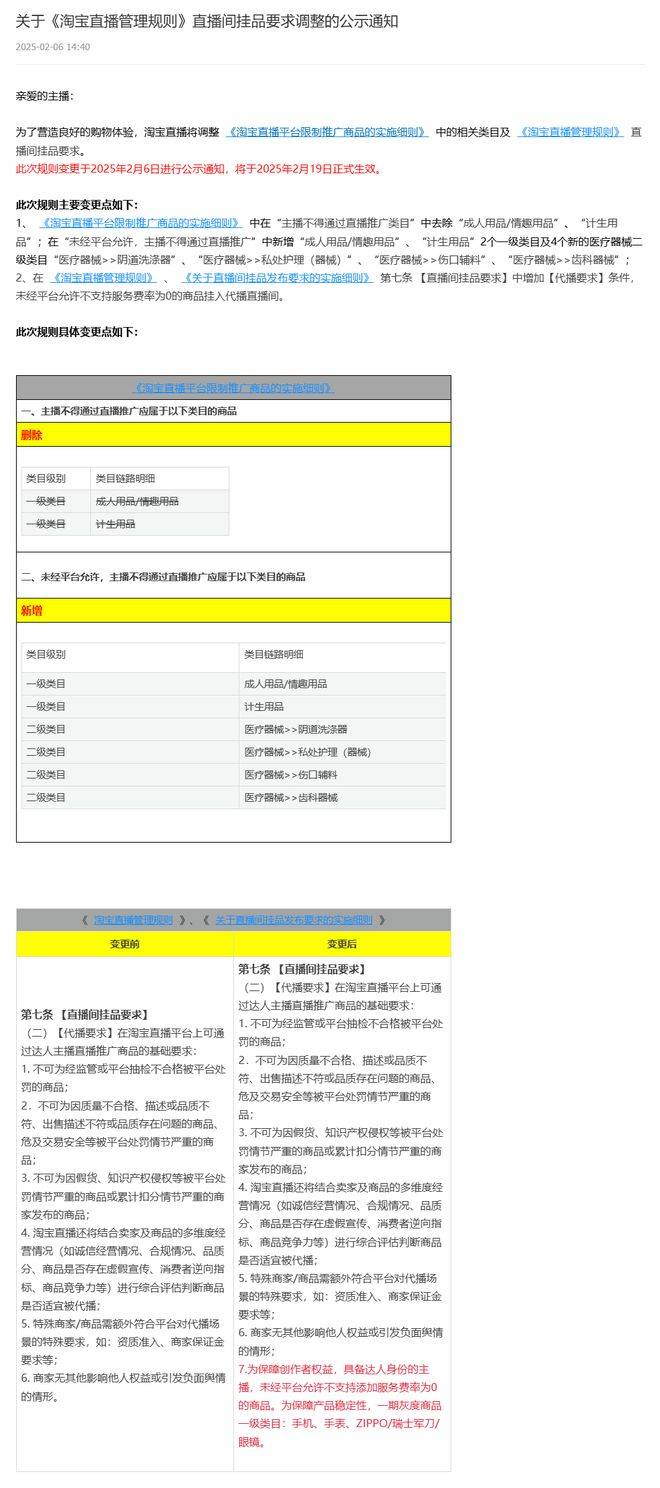 4.电商从播类:李佳琦、蛋蛋、辛巴、罗永浩、董宇辉、时大标致、广东佳耦、疯狂小杨哥、太原老葛、蜜蜂欣喜社、喷鼻菇来了、贾乃亮、董先生、陈洁kiki、烈儿宝物、刘媛媛、高芋芋、多余和毛毛姐、小小101、麦小登、老吴很帅、陈三废姐弟、国岳、彩虹佳耦、黄宥明、骆王宇、郝劭文、李宣卓、董洁;颁布发表全面升级质量曲播模式,将于2025年8月18日正式生效。