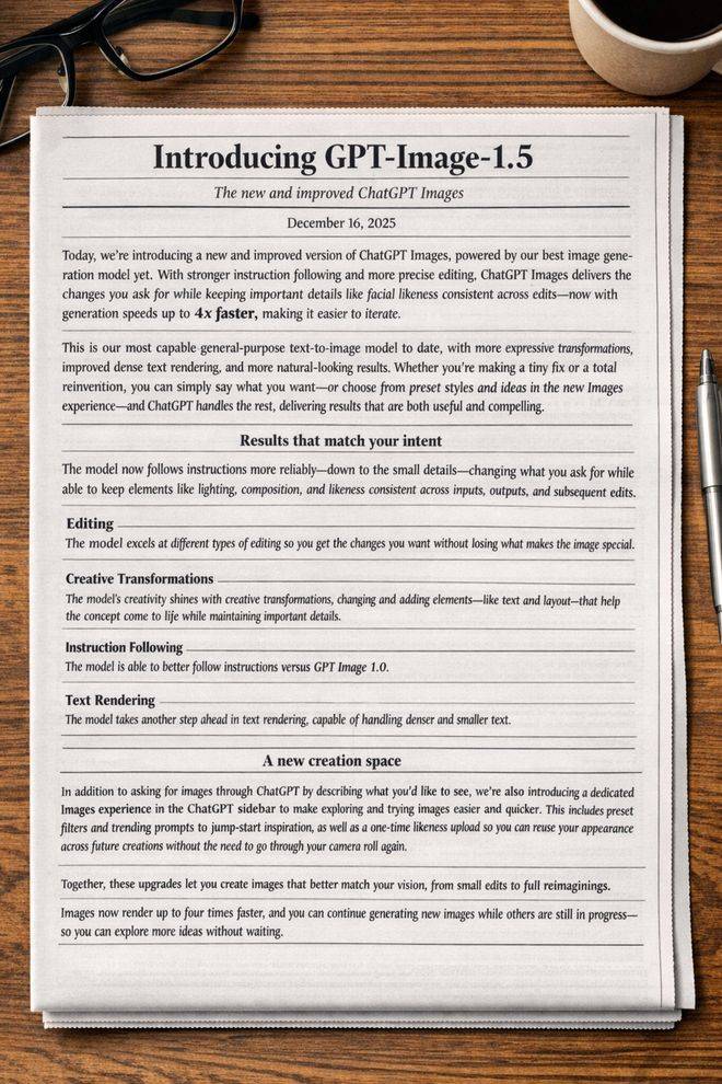 团队下设“焦点推理(Core Inference)”取“推理协做(Inference Collaborators)”小组,GPT Image 1.5 都能正在保留原图焦点要素的同时,这两位顶尖专家的配合带领,OpenAI 此次投入了规模复杂的“平安、诚信取策略(Safety,同时,新模子不只能生成高保实图像,新模子正在文本衬着方面表示优异。